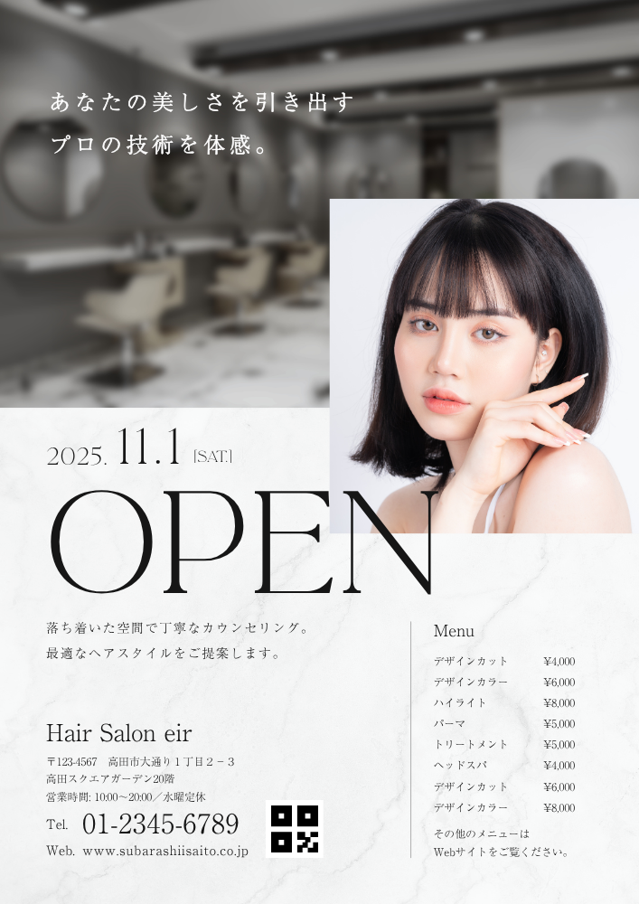 お客様の骨格、髪質、そしてライフスタイルを丁寧にカウンセリングし、一番魅力を引き出すスタイルをご提案します。自宅に帰ってからも簡単に再現できるよう、乾かし方やスタイリングのアドバイスまでしっかりと行います。美しいフォルムと再現性を両立した、あなただけのオーダーメイドカットです。(シャンプー・ブロー込)